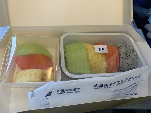 回程飞机餐又提前选好,这次我选了水果餐,真的全是水果,吃不饱啊!