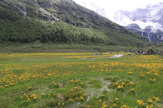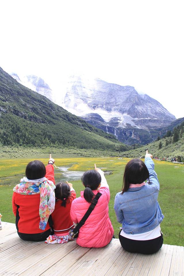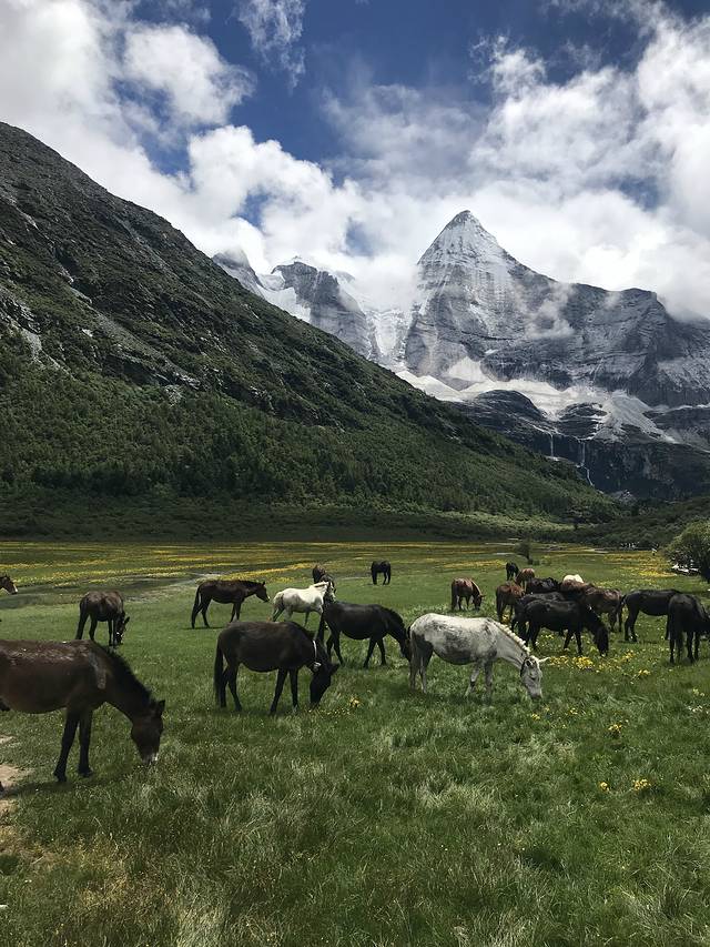 8月9日 又是雨神随行!人也好多啊,买票后先是坐区间车走了大半个小时,然后可以选择坐电瓶车或步行进去洛绒牛场。下雨当然是坐电瓶车啦,而且步行好远的啊。中午停雨放晴了一会儿,才得以看见3座神山。然后人多得连去牛奶海、五色海的马匹都抢完了,我们就不去了。亚丁比普达措的确要漂亮一些。网络上也大把美图,就不铺图了。
