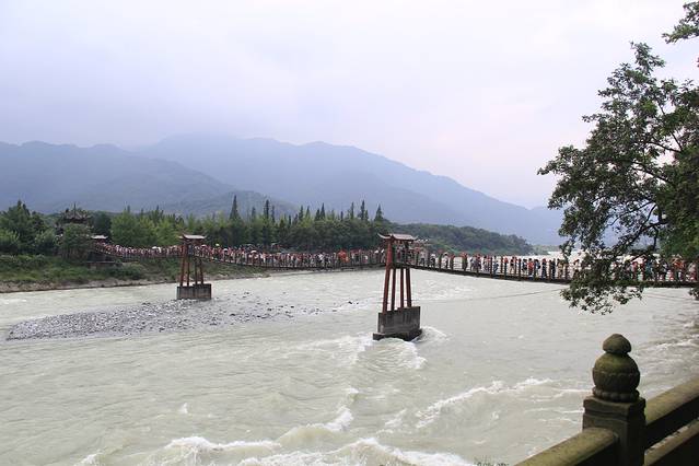 下午我们去了都江堰,这是LG坚持要带娃去涨知识,虽然我觉得没有必要。那里也有好多人,里面坐电瓶车都要排长队,我们就索性步行进去了,为了不走回头路(其实还是因为排队坐电瓶车的人太多了),我们过了“夫妻连理桥”到了对岸,结果原来是山路步行的,走了一、两个小时吧,兜了一个大圈才能出去,到了南桥。我们都累得不行了。