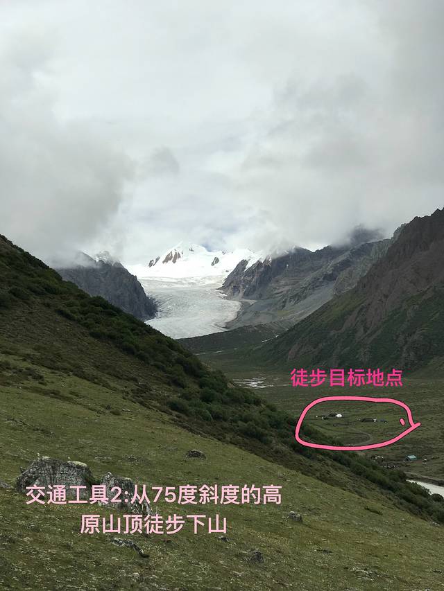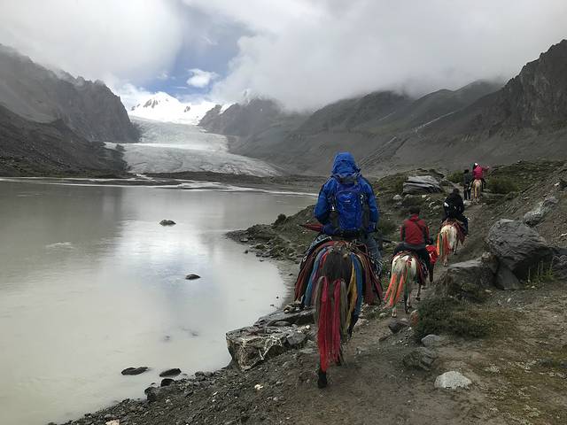 这里海拔4800米啊,我家小娃能够自己从山顶走到山脚,从下马的地方走到冰川脚下。真的很赞!