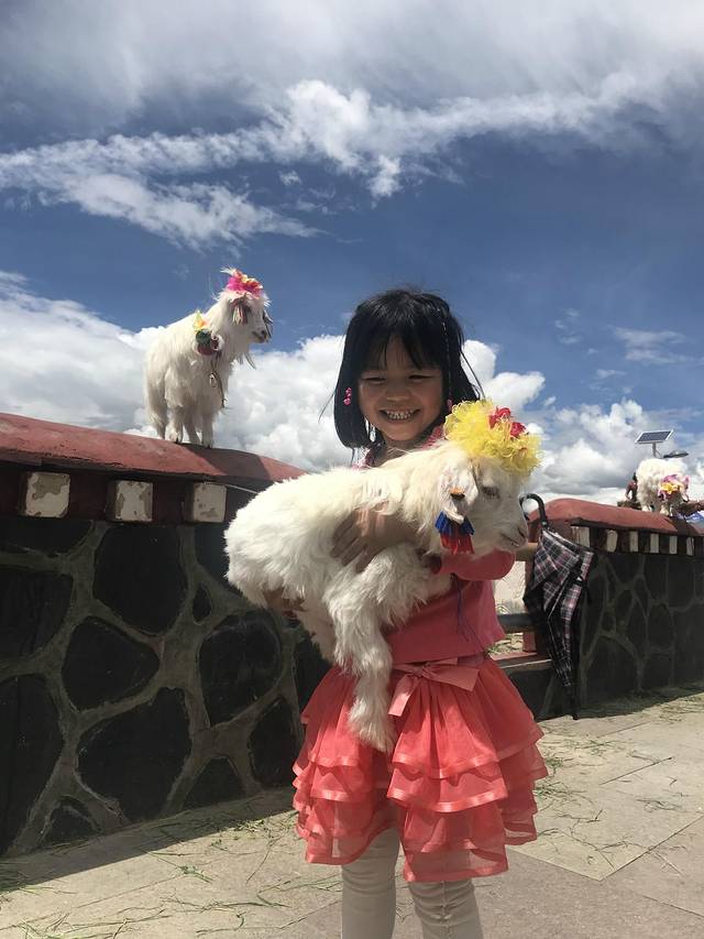 路上的休息点有小羊供拍照,5元1次,小娃可开心了。
