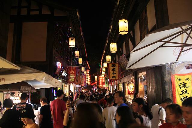 在宽窄巷子附近的公寓住,放好行李后,就到了锦里吃晚饭和逛逛,还是好多人。