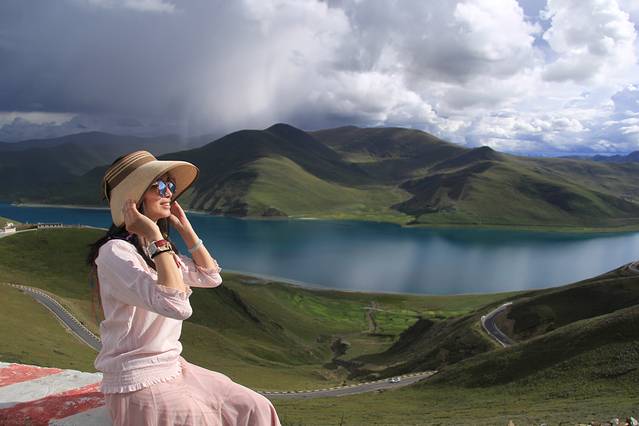 8月16日 中午,我们向羊湖出发,百度地图导航的路走的近一点的路需要经过一条小桥,有2米的限高,我们有车顶箱过不了,又要倒回大半个小时路程回到主干道走大路先过河对岸。这样就多费了1个半小时,好事多磨吧。到了羊湖,太惊艳了!我们从山顶开车玩到湖边,也正因为我们路上多浪费了1个半小时,游人不多了,留给我们慢慢享受美景。由于天空多云,羊湖并没有展现TA最美的风景,但是也足够让我们惊艳的。