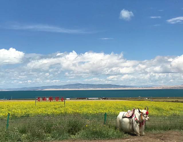 8月21日 沿着青海湖的南面沿路公路。有朋友介绍可以开车到湖边的,10元/人。我们跟着朋友的指引,直接开车到湖边,可以走到湖边去拍照。2019年暑假经过再去的时候,已经涨价了。开价20元/人,最后是50元一车,而且还需要步行一段路。