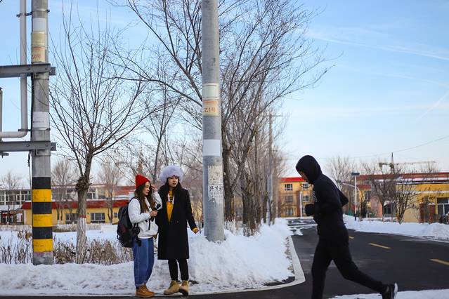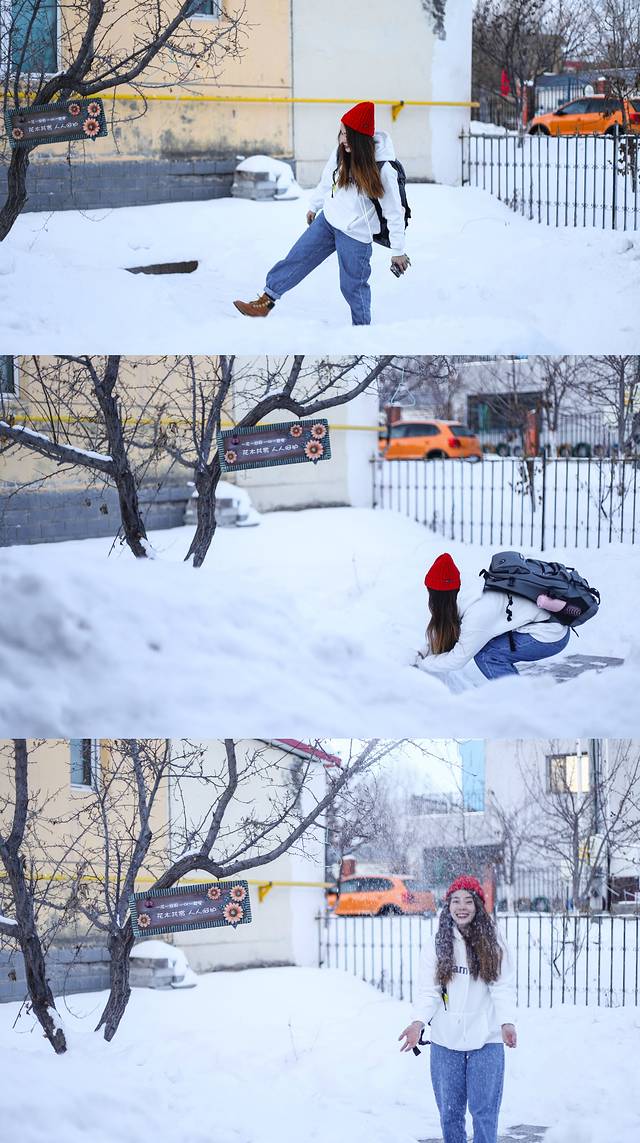 出门第一件事,在高高的雪堆上踩下第一个脚印