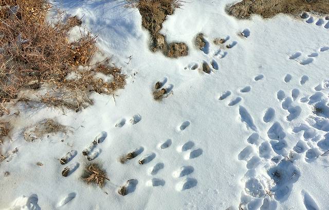 不知道是什么动物的小脚印,一路都有,走得好整齐。