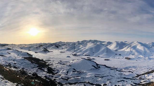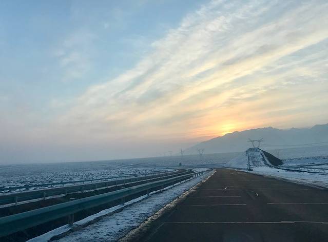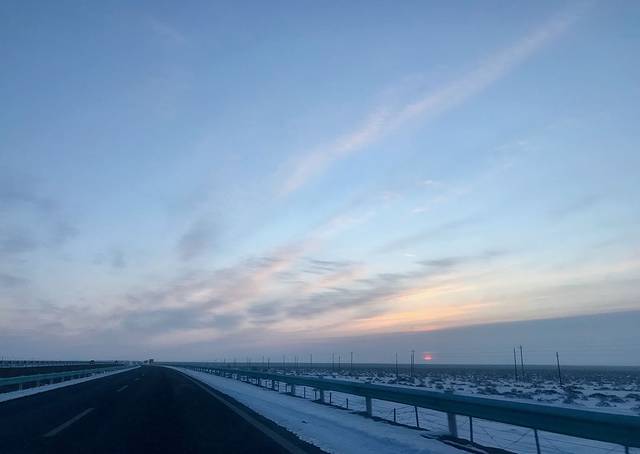今天是我们的南疆自驾旅行的最后一天,最后在路上看一次日出,太阳升起的那一刻两边的戈壁滩泛着微光,像是月球表面一样。