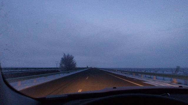 早上8点天还是黑着的,雾很大,车子开动了, 这可以稍微睡着了。