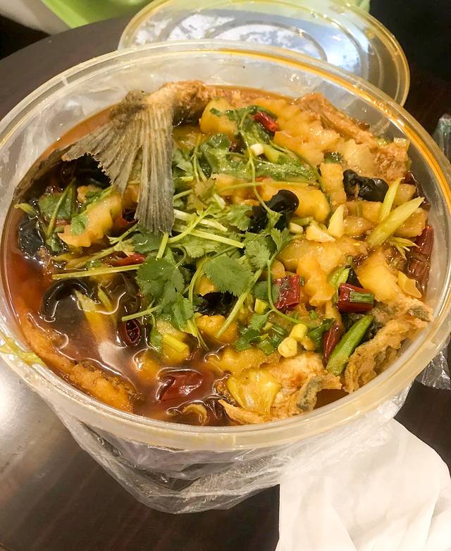 由于没有餐厅开门,美团点了烤鱼和饺子,好吃,
