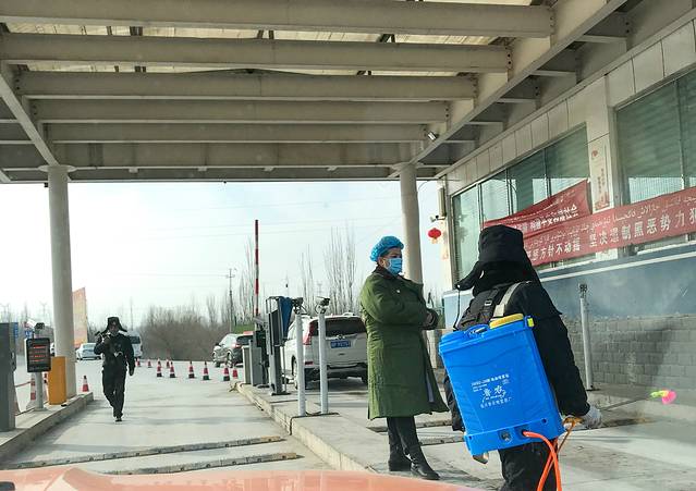接近5点左右,进入喀什地区,这里的防护已经开始对进城车辆进行消毒了。