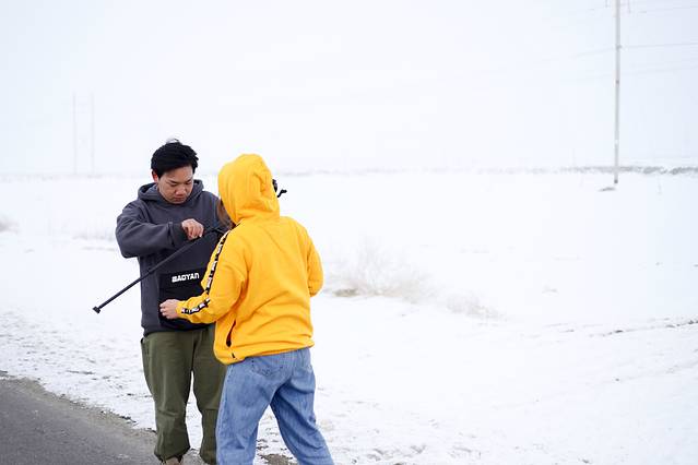 行走在冰面上,走到冰面之前一定要检查是否结实。