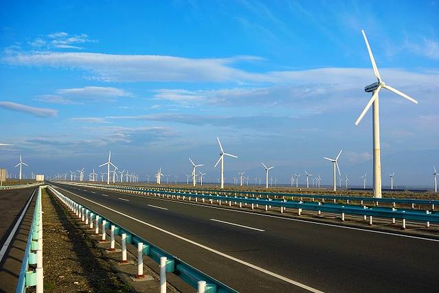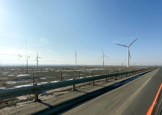 这是我国目前最大的风能基地,高速公路上一道亮丽风景线。
