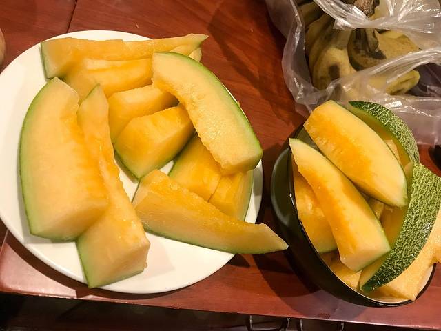 买了一堆水果,哈密瓜好像吃蜜糖一样