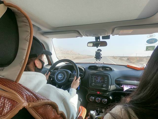 这里还有一家人在不远处的空地和骆驼玩耍。询问后,他们也不知道今年峡谷封闭了,还告诉我们他在另一条路线进来,那里还有一个自然景区,便往指引方向开下去了。
