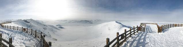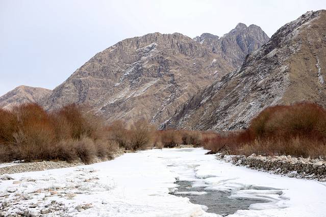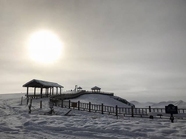 站在观景台上,冷风刺骨,我们邂逅了一个千里冰封的九曲十八湾,肉眼隐约可见的一条河流。冬季十八弯是看不着的,只能感受哈。