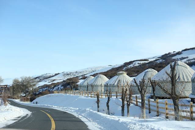 景区里的蒙古包,应该夏季的时候就可以住这些帐篷了。
