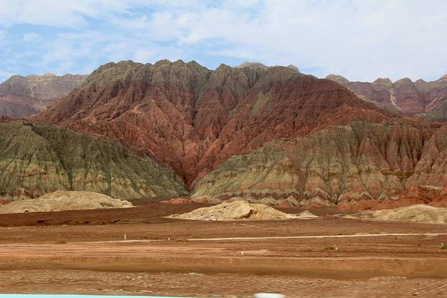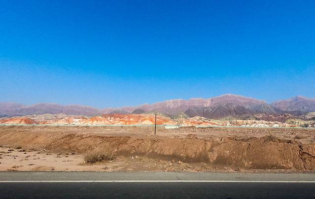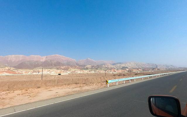 阿克苏到喀什一路都是丹霞地貌,山体绿的,黄的,红的都有,路面基本没车。