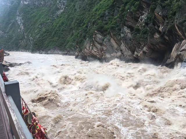 8月7日 上午从泸沽湖返程回到了云南北上,到了虎跳峡的上虎跳景区,非常壮观。互相碰撞汹涌的水流,扑面而来。中虎跳需要徒步,我们带着娃,就不去了。