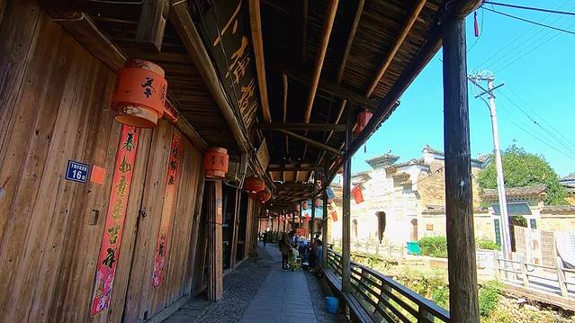 走在古旧的青石板路上,听着溪流汩汩流过,村庄的居民们或三三两两的倚坐在溪边的“美人靠”上聊天,或坐在路旁随处可见的茶桌边喝茶,空气中充满了茶香与安逸。