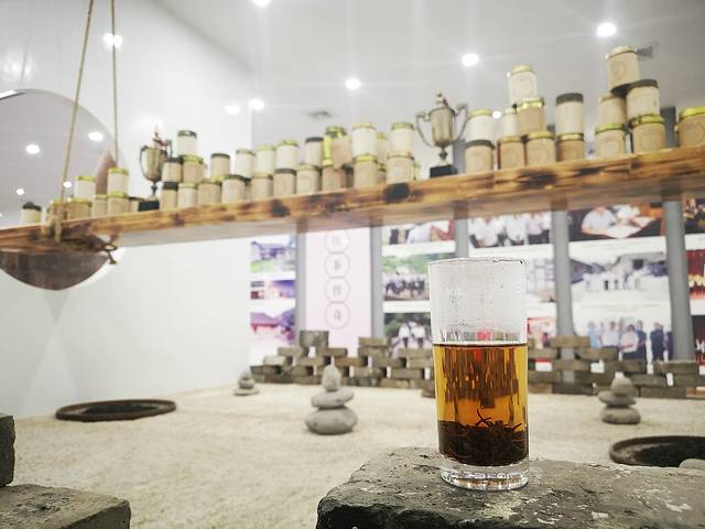 参观时接待方还特意准备了热热的宜红茶,一边品味茶香一边了解茶之历史,热茶驱走了降雨带来的寒意。