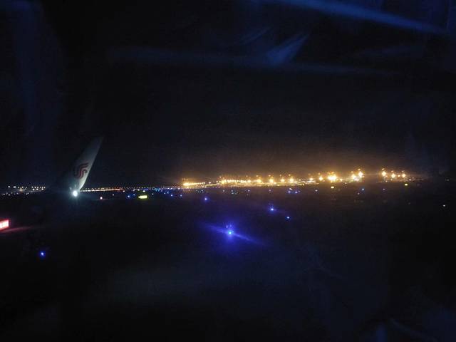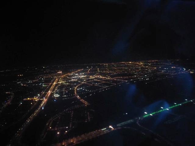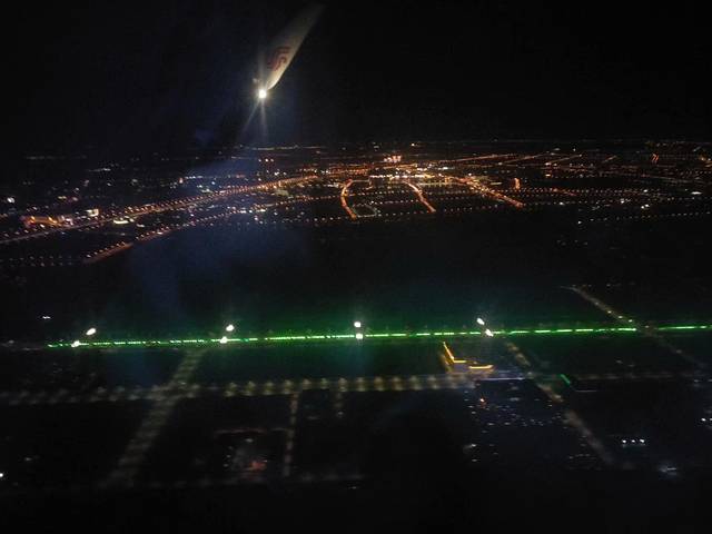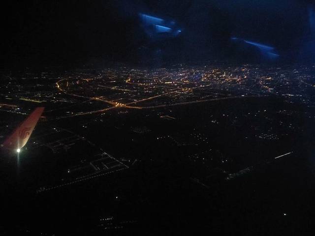 整个天津市的夜晚,灯火璀璨,到了海上时,一片漆黑。两个小时的航班,吃了面包,喝了热水,热得出汗了,还睡了一觉。飞机快降落时,旁边座位的大叔在给妻子发微信消息,我心里很是无语,因为自己看过了《中国机长》和飞机安全教育宣传片,知道应该把手机调为飞行模式或关机,在飞机从起飞到降落到整个过程中,手机的信号会干扰飞机的雷达通讯系统,有这样的同伴,真是自己也跟着提心吊胆。