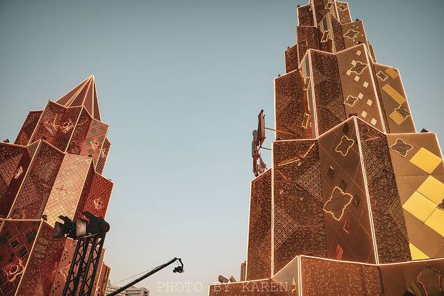 单从外观来看,博物馆的主体建筑分为两部分,一部分是粉色博物馆,一部分是三头神像雕塑。三头神像雕塑位于主体建筑的顶端,由纯铜精雕而成,重达250吨,高约16层楼,看上去十分壮观。