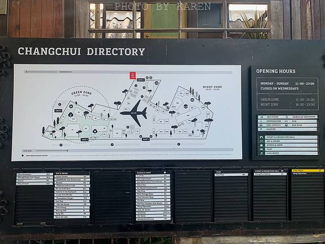 Chang Chui,中文名叫昶随,又叫飞机文创市集。在2017年Chang Chui被称为最值得期待的文创空间,更是被《时代周刊》评为全球百佳目的地。Chang Chui以怀旧、环保和艺术创意为主题,将老旧仓库厂房改造升级,融合复古、工业、现代等多种风格打造,是一个集文创、跳蚤市场、商店餐厅及创意空间于一体的社区。