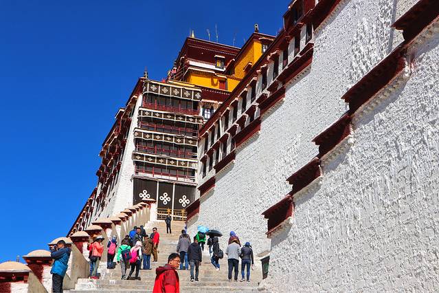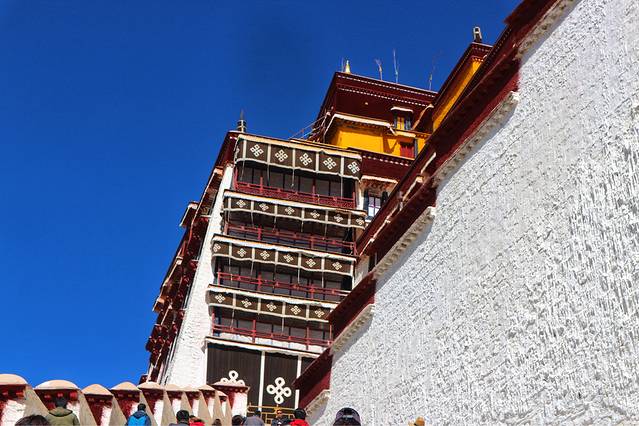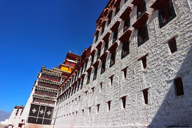 布达拉宫里面不允许拍照,所以我只能在外墙多拍拍了。