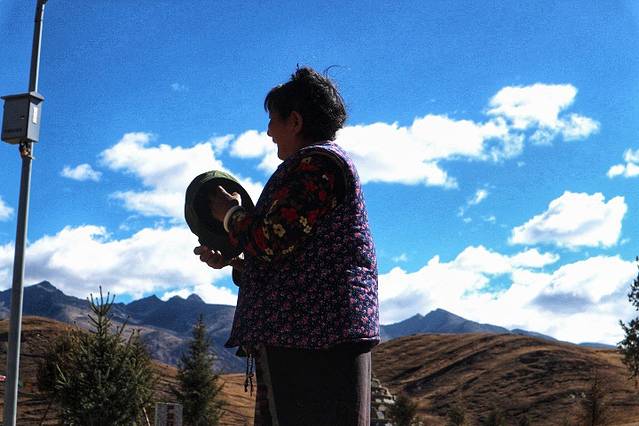 途径理塘,有个当地寺庙,跟着当地人民一起转经,夜宿巴塘。