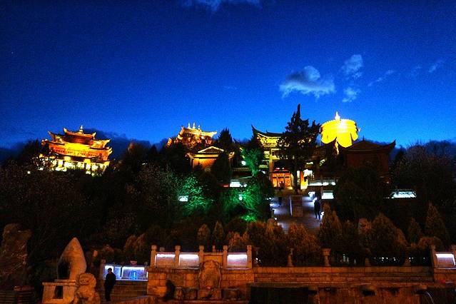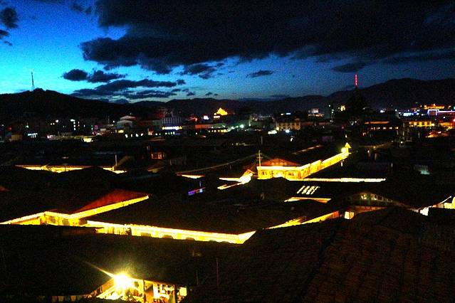 月夜,银色的月光把白色的古城打扮得分外妖娆,于是,当地人就把古城称做“独克宗”。“独克宗”藏语意为白色石头城,寓意月光城
