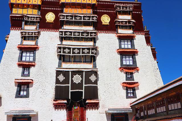 建筑总面积13万余平方米,主楼高117米,看似13层,实际9层。其中宫殿、灵塔殿、佛殿、经堂、僧舍、庭院等一应俱全,是当今世界上海拔最高、规模最大的宫殿式建筑群。