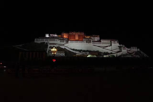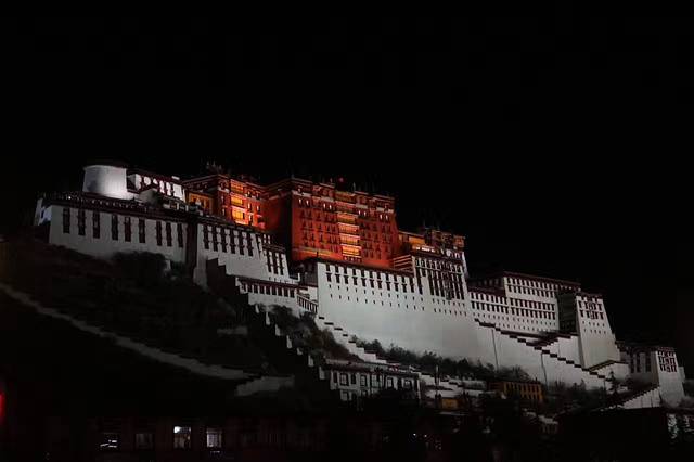 夜晚到达布达拉宫广场,看到一群阿姨在跳广场舞,氛围让我不禁融入其中。