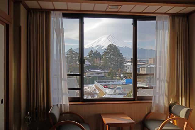 一大早拉开窗帘就看到富士山美景映入眼帘,当真的清新脱俗,美丽动人,尤其是朝阳的余晖撒在山顶的片刻,更加壮美秀丽。