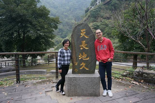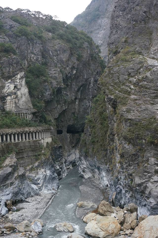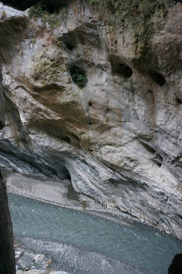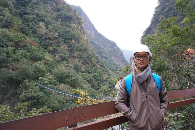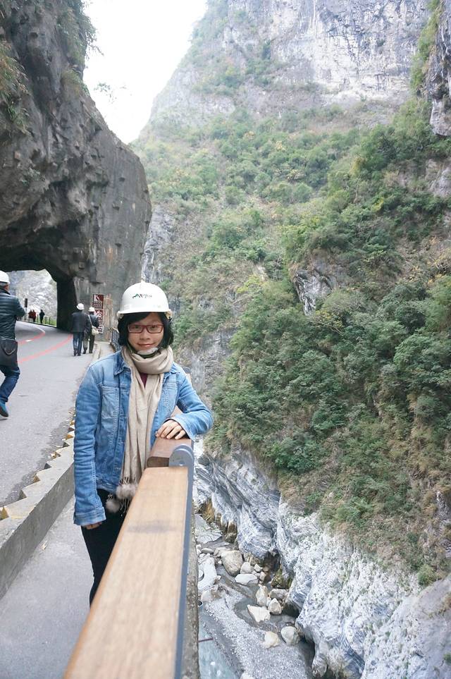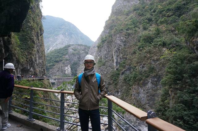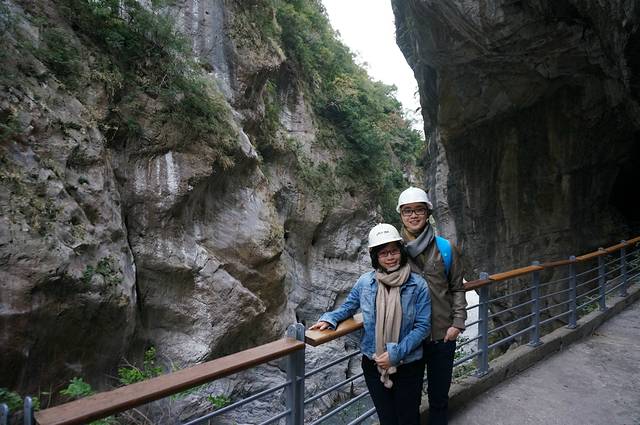 太鲁阁公园坐落于一个大理石峡谷里,峭壁断崖望而生畏,高不见天,低不见谷,去台湾之前对景点落石砸死游客的新闻时有耳闻,心里总不免有些惶惶。来到景区附近,我们的导游在公园管理处替大家领来安全帽,帽子是公用的,凡是来景点的游客都要用吧,扣在脖子上的带子有些油腻腻黏糊糊的,但为了安全起见,大家还是乖乖地戴上了,然后活脱脱一个煤矿工人。