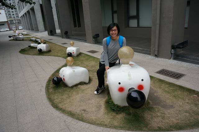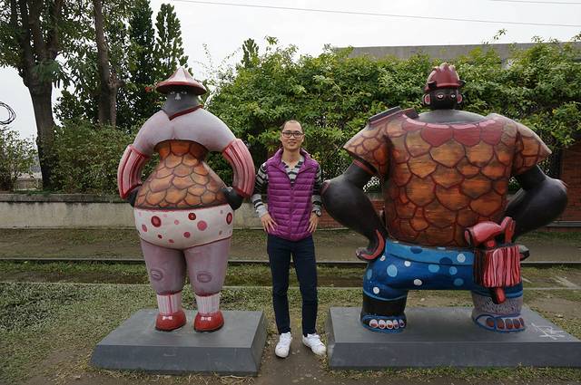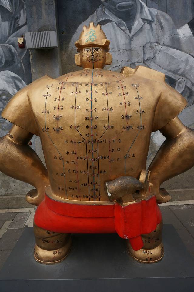 园区内散布着大量外形可爱,设计前卫的高大公仔,特别是C5仓库前两个红透半边天的针灸人像,人身上的经脉穴道都被标注出来,很有意思。