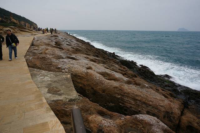 进入野柳风景区,沿着步道而行,一路可尽览奇特的地质景观。