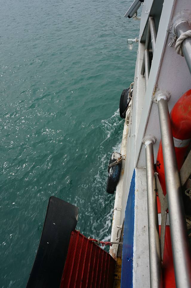 对岸驶来的渡轮靠岸下客完毕,就会开放登船了。记得自备钱币,投入钱箱,也可以刷高雄捷运卡和悠游卡。
