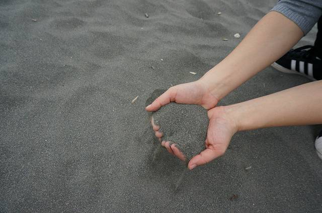 这里的沙子是黑色的,非常的细,踩上去很舒服。