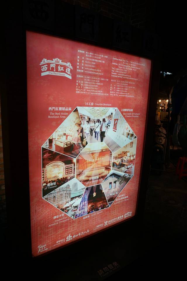 西门红楼建于1908年,因其八面型的建筑而得名,又称“八角堂”,位于台北万华区的成都路上,紧邻西门町步行街。建立之初是作为市场用,随着时光的推进改为剧场和影院,现在台北市政府的支持下,改为文化和艺文的聚集地,成为台北有名的文化聚落。