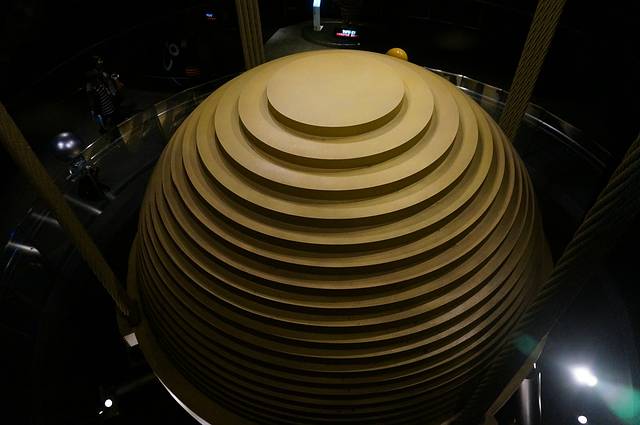 作用是通过吊装在建筑物内中上部的约重几百吨的大铁球,减少楼体的晃动来达到抗震的目的。还有台湾之美多媒体影音走道,可纵览台湾知名景点日月潭、垦丁、阿里山、玉山、北投温泉、历年台北101跨年焰火精华,这里还有世界精品宝石艺术馆——聚宝88。