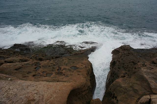 由于受到长时间的波浪侵蚀,反复干湿,长期盐粒结晶,砂粒钻蚀及溶蚀等作用,因而产生崩崖,壶穴,礁柱,层间洞穴等奇特景观,极具地形教学及研究价值,使这里成为看海观石的好去处。