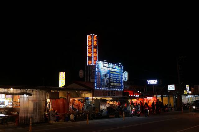 垦丁大街到了晚上更是热闹非凡,是当地唯一的夜市,好吃的、好玩的摊位摆满了垦丁路的两侧,饭店和酒吧的霓虹灯到处闪耀。甚至还有停在路边的小卡车,把车厢板翻下来居然就变成了一家路边小酒吧。