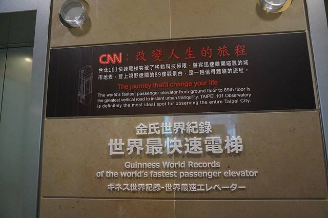 在排队等候的过程当中就可以参观台灣之光走廊,大约边走边等了10分钟后,终于到我们乘坐电梯了,电梯是直接到达89楼的。