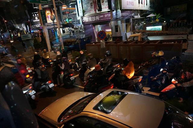 体现台湾拥挤的街道,台湾的摩托车还是很盛行的,到处可见