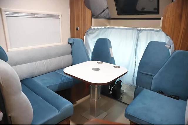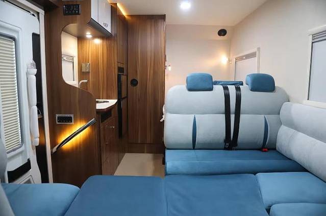 来介绍介绍房车构造吧,总的来说面积不大,两个大人一个小朋友还是能住下的。有卫生间淋浴间,一张双人床,餐台,小冰箱。还有一个餐桌,晚上可以放下来变成一张单人床。对了,有电视,但是没有台,哈哈哈!虽然不能看,但是人家也有啊!