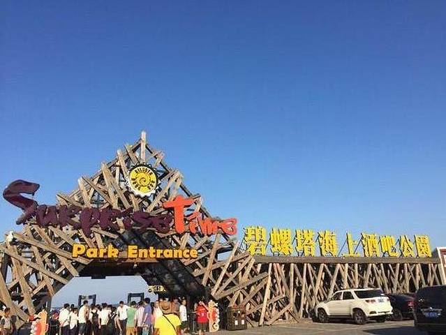 第二天,自然醒。开车1分钟到达公园北侧的友谊浴场。免费的沙滩,租了一把伞两把躺椅100元。不限时哦!这里的沙子比公园里的好很多,而且人不多,听说除了当地人,很少有人知道这里,哈哈,所以说,多看看攻略还是极好的!
