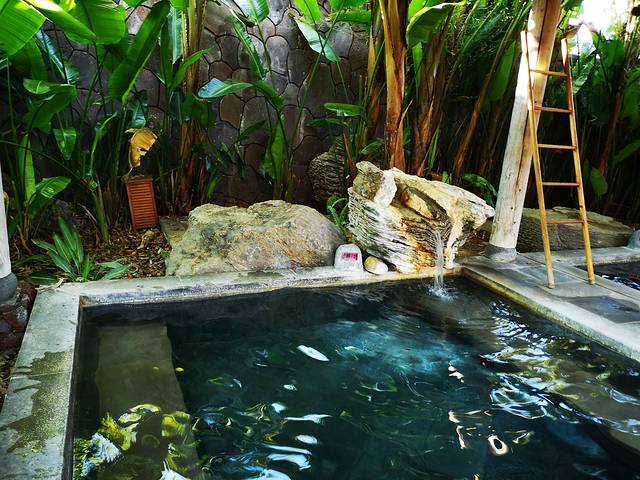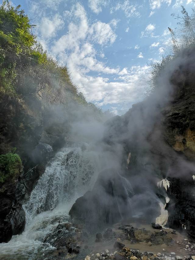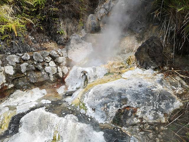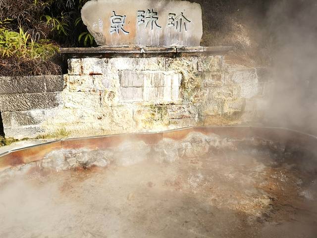 踏进景区,吸引人的是“热海大滚锅”,这是一个圆形温泉池,水温约96度,断不可贸然入水,看看就好。池边有当地人售卖用大滚锅煮出来的鸡蛋,用稻草串成一串,一般5元一只,可以尝尝。沿着景区内的环形步道慢慢前行,沿途会看到超多热气喷涌的泉眼,怀胎井、眼镜泉、珍珠泉、鼓鸣泉、狮子头、蛤蟆嘴……无不形态各异,泉如其名。腾冲热海风景区目前开放有两处泡温泉的地方:浴谷和美女池,都需要另行收费。
