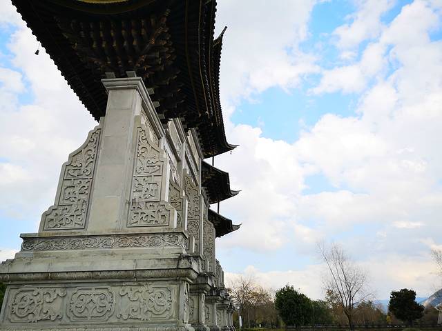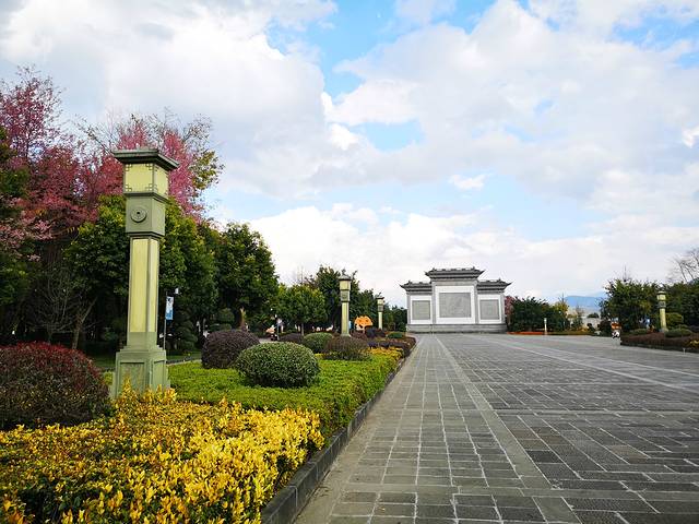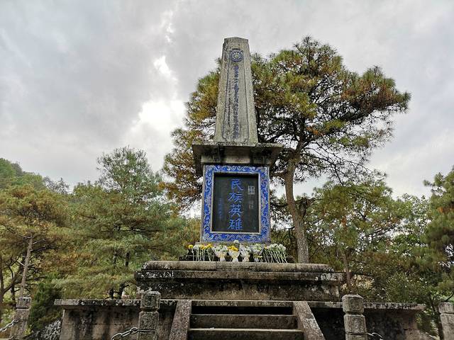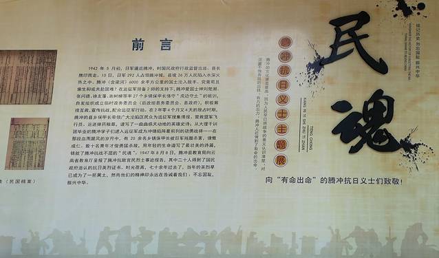 一进门房,右手边书店有很多关于腾冲和远征军的历史书籍,接着就是两个展厅,东西分布,陈列着相关的战史资料和实物,可以一睹先烈的丰姿笑貌。墓园的主体建筑——大门、甬道、忠烈祠、小团坡烈士墓、纪念塔,坐落在一条中轴线上,依次递进,逐层升高。而在墓园大门不起眼的地方还有一个小小的“倭冢”,是战后为日军收尸立的坟。