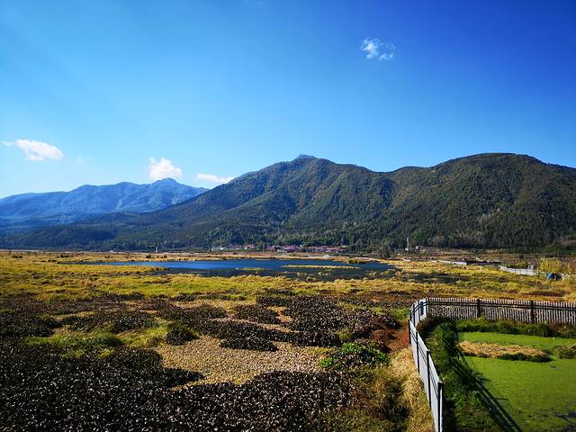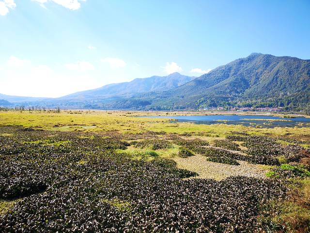腾冲北海湿地属高原火山堰塞湖生态系统。这个湿地保护区在春夏有着鲜花、芦苇和群鸟的迷人风光,浮动的草排由历年的草根盘结而成,飘在水上,夏季草排上面生长着茂盛的北海兰、苇席草、茭菰草、漂草和许多叫不出名的野草野花,一片醉人的蓝色让你分不清这是草原还是湖泊。