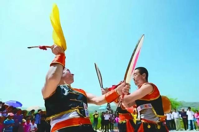 羊皮扇鼓舞民间俗称耍司棍子、跳端公、抽保状。